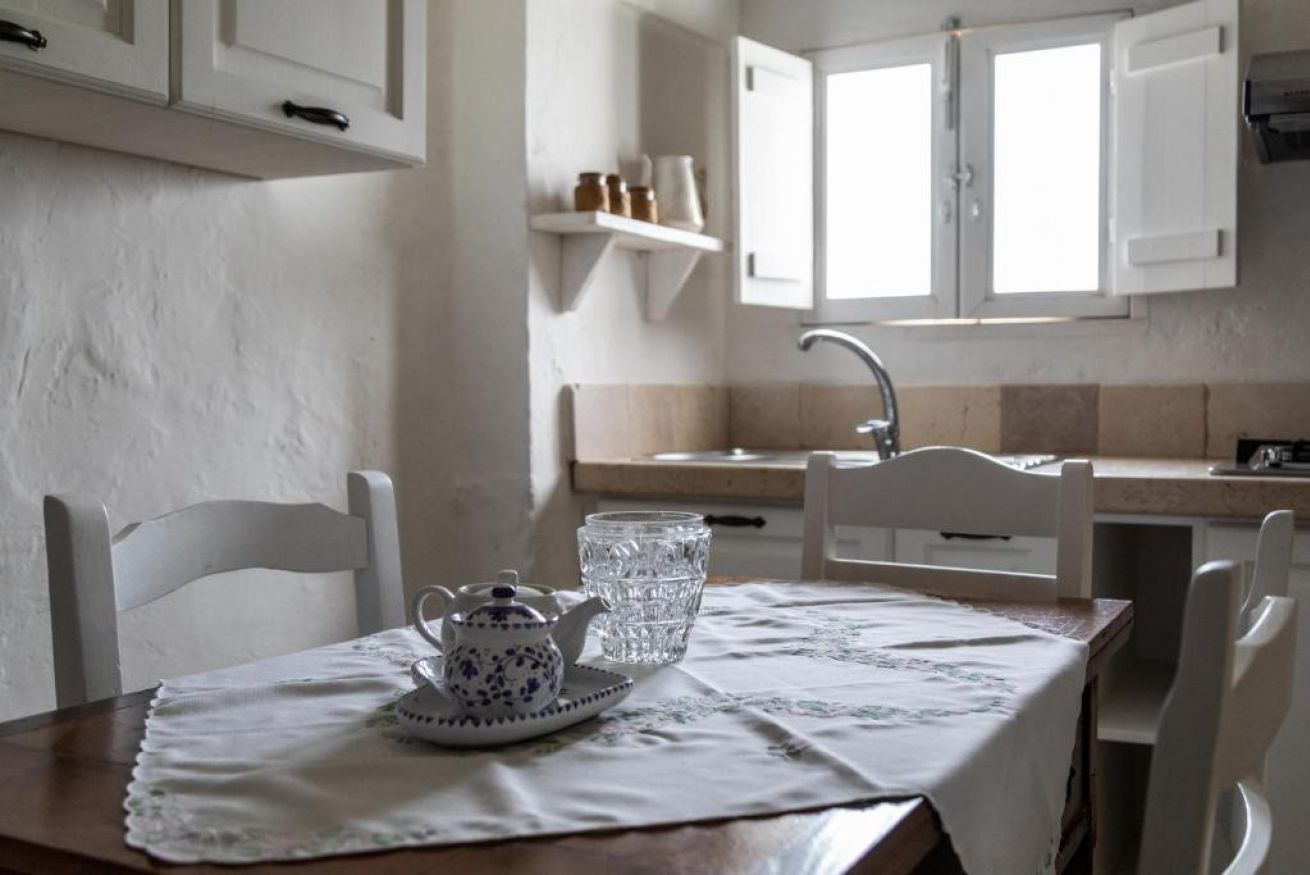 Dispone di soggiorno con camino e angolo cottura, camera da letto matrimoniale con possibilità terzo letto, wc in camera. Terrazza panoramica al primo piano con vista mare e sulla macchia mediterranea.