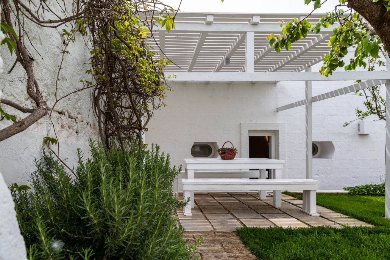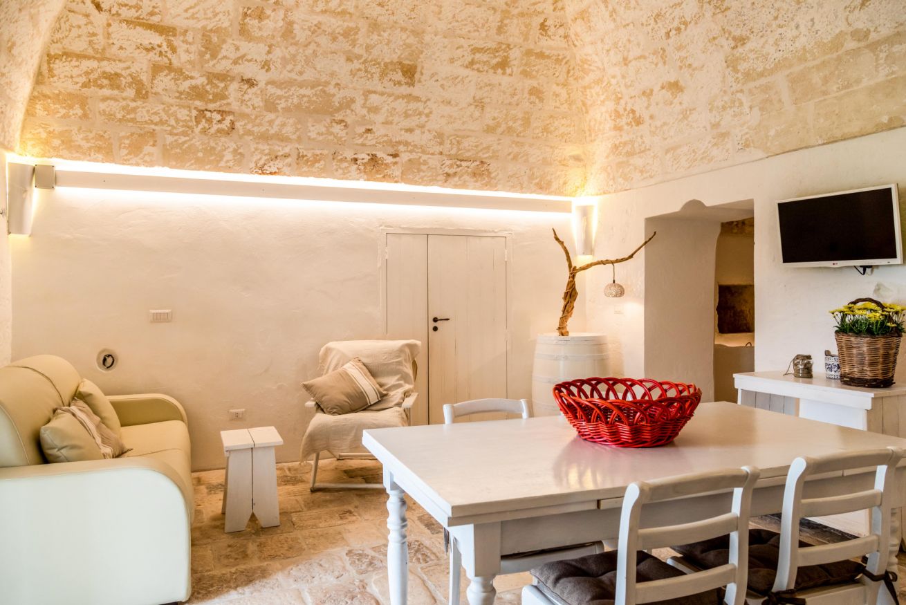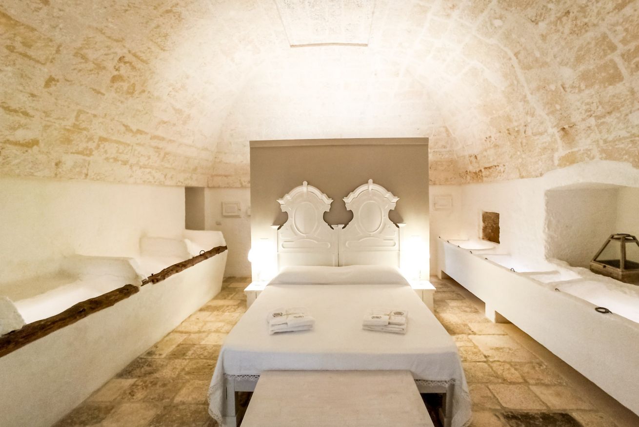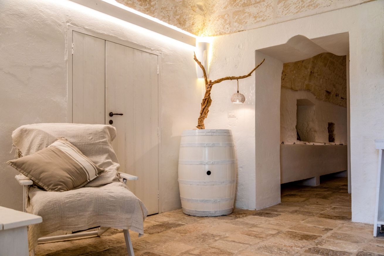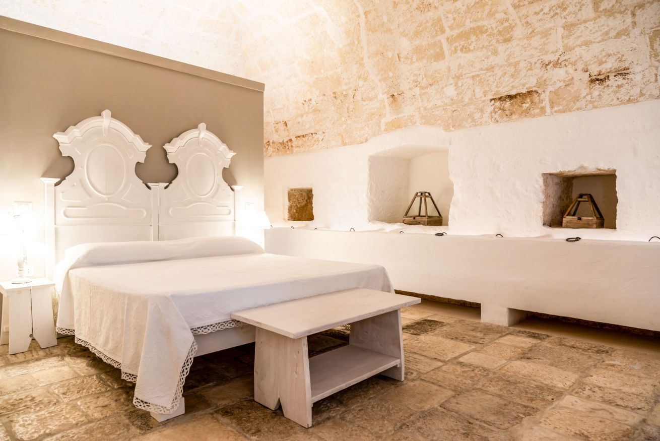 La camera, le volte, le pareti, i pavimenti, gli arredi sono legati alla tradizione delle masserie del Salento.